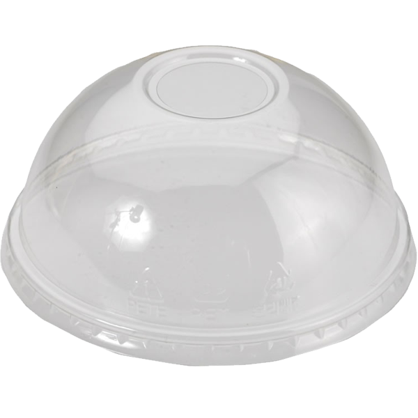 Dome lids for when your cup runneth over!  Sturdy PET material snaps securely onto the cup so your guests don’t have to worry about spills and drips.  Equipped with a hole in the top for a straw or other utensil.  Perfect for slushies and snowcones, iced coffee, smoothies and all of your creative cold beverages.  Crystal Clear for perfect clarity.