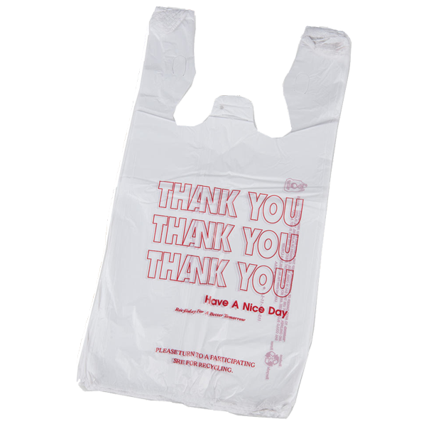 Large Size T-Shirt bags with Thank You printed on them lets your customers know you appreciate their business.  Great for take out orders, bakery items, and groceries.  Bags have size gussets that expand for maximum usability.