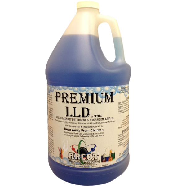 Heavy duty, highly concentrated liquid laundry detergent for use in commercial washing machines at any temperatures. Formulated for heavily soiled or greasy clothes and other fabrics.