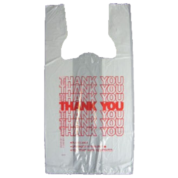 Medium Size T-Shirt bags with Thank You printed on them lets your customers know you appreciate their business. Great for take out orders, bakery items, and groceries. Bags have size gussets that expand for maximum usability.
