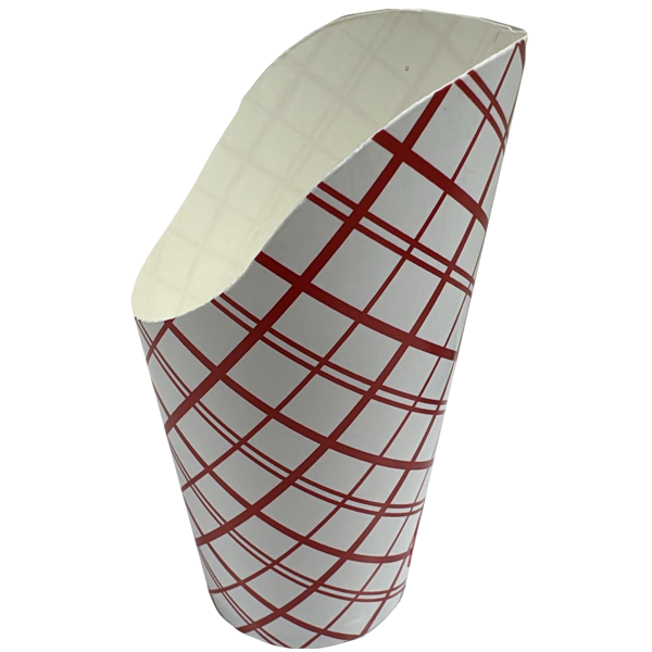 Paper Cups with a scooped top for french fries, onion rings or other finger foods.